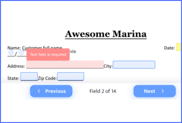 The Contract Wizard offers a simple and efficient way for customers to navigate through the contract. The "Next" and "Prev" buttons take users directly to the next or previous required field for input or signature, eliminating the need to manually search for them. This saves time and streamlines the completion process.