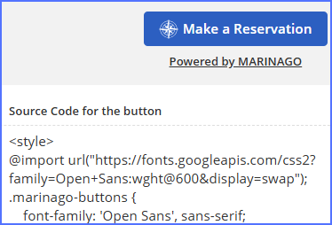 Seamlessly add online booking to your website with a customizable 'Make a Reservation' button. MARINAGO generates all the HTML and styling you need—just copy and paste the code into your site and start accepting reservations instantly.
